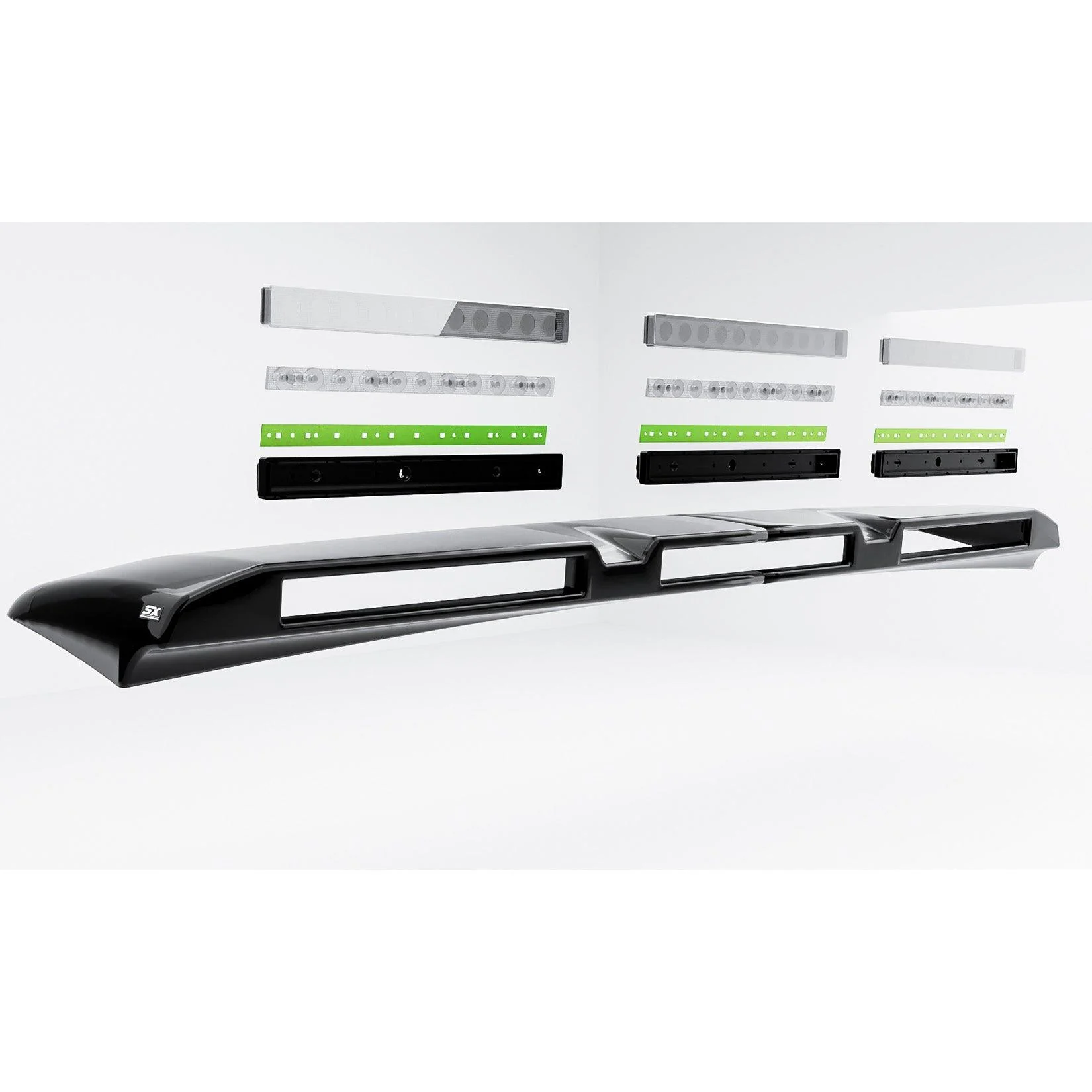 Enhance the functionality and style of your Ford Transit Custom 2024 with our Gloss Black Roof Light Pod featuring 3 high-output LED lights with a built in amber strobe work light with multiple flash patterns. Crafted meticulously using advanced 3D scanning and CAD technology, this roof light pod is engineered for precision fitment and durability. Whether you’re navigating through off-road trails or illuminating your work area, this sleek light pod is designed to meet your needs.